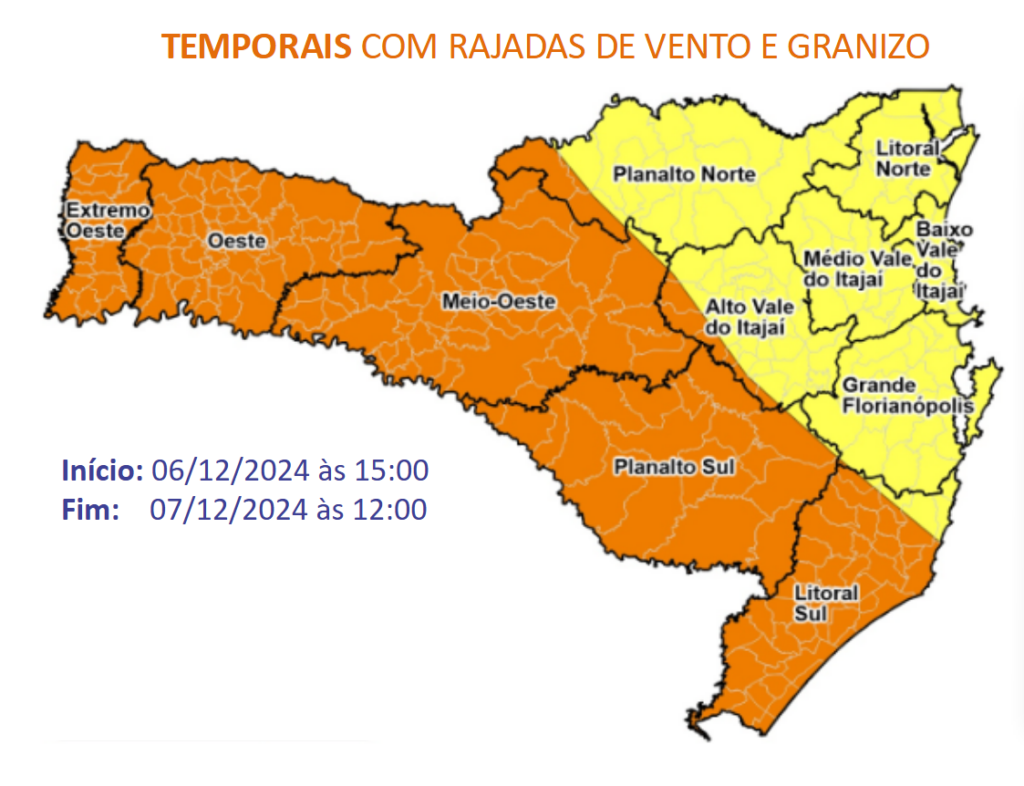 ATUALIZAÇÃO: Atenção Meteorológica SDC/SC 06/12 – Temporais e chuva intensa e volumosa entre sexta (06) e segunda-feira (09)