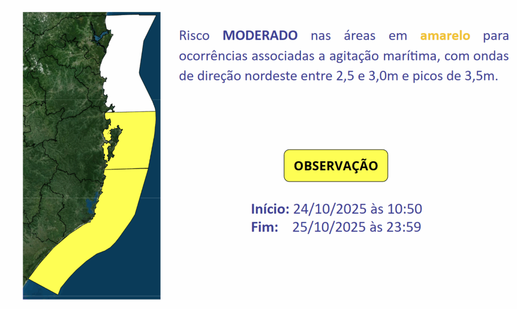 Atualização: Observação Marítima SDC/SC 24/10 10:35 – Mar permanece agitado entre essa sexta (24) e o sábado (25) entre o Litoral Sul e a Grande Florianópolis