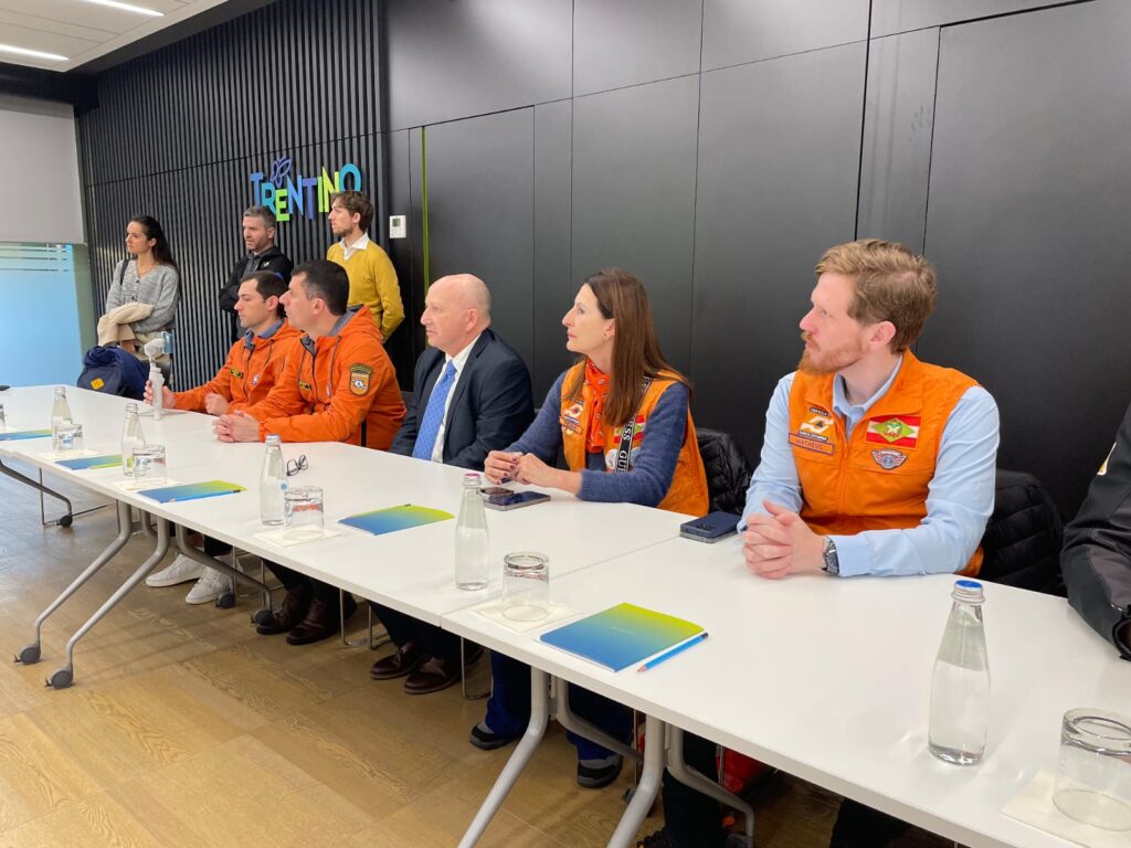 A comitiva brasileira foi recebida pelo presidente da Província Autônoma de Trento, Maurizio Fugatti, e pelo diretor-geral de Defesa Civil de Trento, Stefano Fait, em uma reunião que apresentou o funcionamento do sistema italiano de proteção civil, com ênfase na estrutura de resposta integrada e no protagonismo do voluntariado.