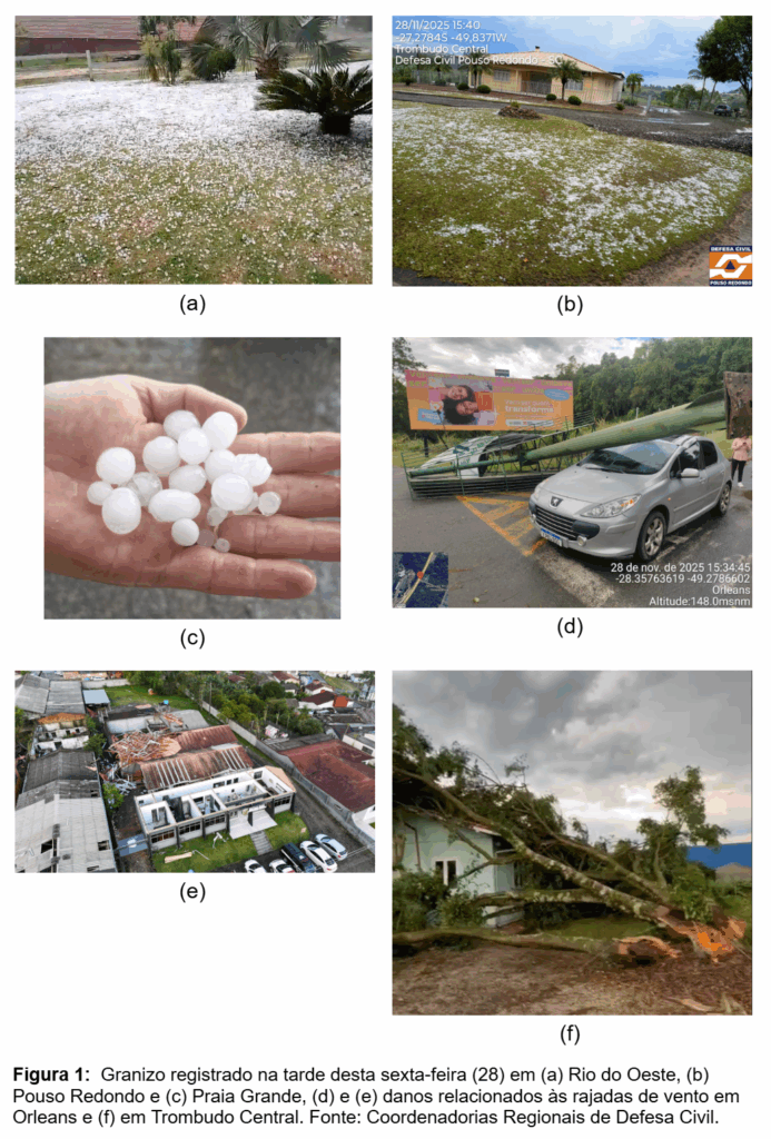 NOTA METEOROLÓGICA SDC/SC 29/11 –  Sexta-feira (28) marcada por temporais com granizo e ventos fortes do centro ao leste catarinense