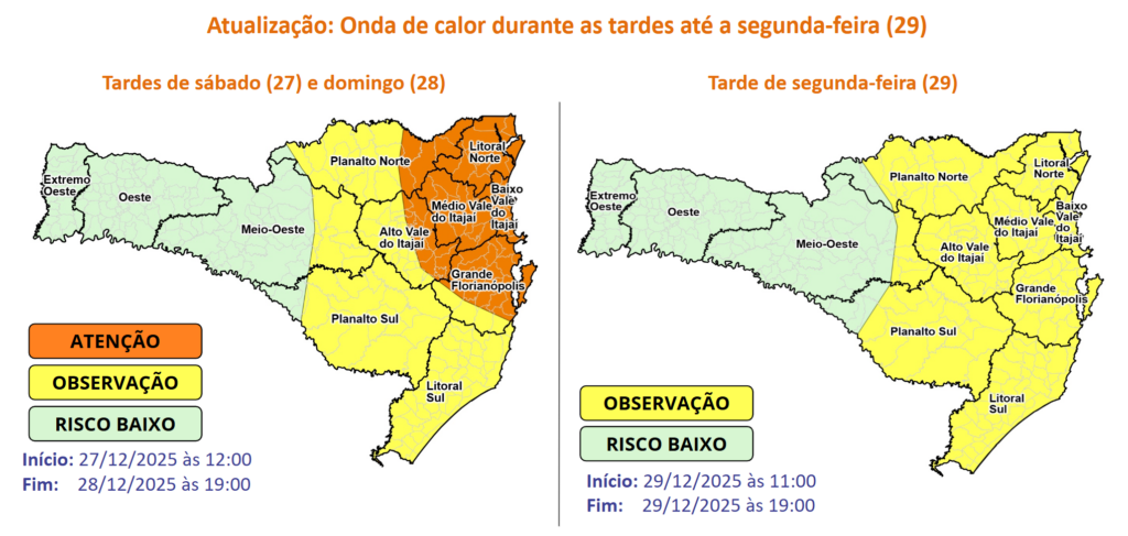 Atualização: Atenção Meteorológica SDC/SC 27/12 11:45 – Onda de calor durante as tardes até a segunda-feira (29)