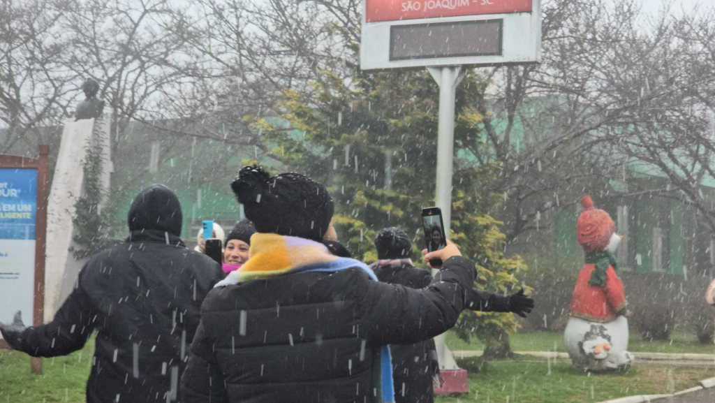 Figura 02 – Cidade de São Joaquim registra precipitação invernal na madrugada e manhã do dia 09 de agosto de 2025.
