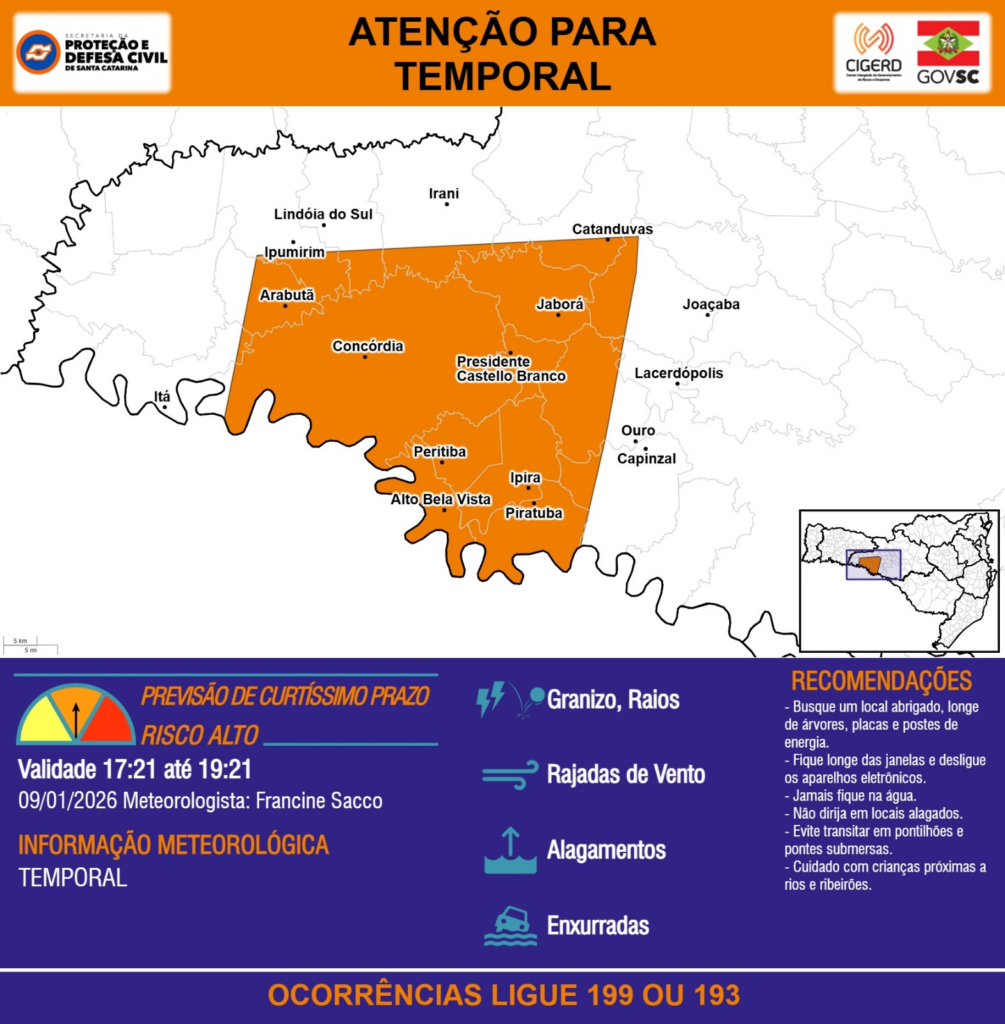 A Secretaria da Proteção e Defesa Civil segue monitorando as condições meteorológicas. Esteja preparado para tomar as ações necessárias em caso de agravamento da situação.