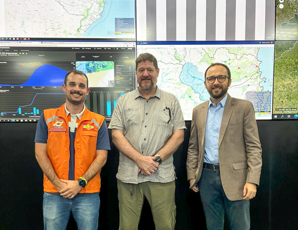 Durante a agenda, o representante norte-americano conheceu as principais áreas do CIGERD, incluindo o Centro Integrado de Operações e os setores de Meteorologia, Hidrologia e Geologia. A visita técnica foi acompanhada pelo hidrólogo da SPDC/SC, Dieyson Pelinson, que apresentou o funcionamento dos sistemas de monitoramento, análise e resposta a eventos adversos no estado.