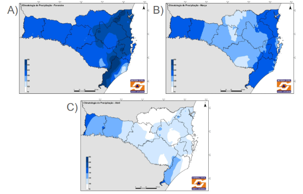 O trimestre composto pelos meses de fevereiro, março e abril correspondem, climatologicamente, ao final do verão e ao início do outono em Santa Catarina, período marcado por variações típicas no regime de precipitação associadas à transição entre as estações.