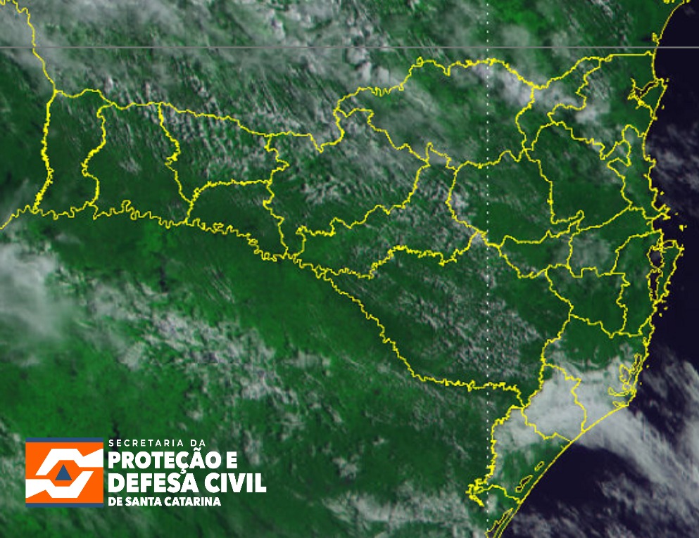 A manhã desta sexta-feira (13) é marcada por tempo estável em Santa Catarina, com presença de nuvens no Litoral Sul. As temperaturas neste momento já estão elevadas, principalmente na Grande Florianópolis, Litoral Norte, Vale do Itajaí e Oeste, onde os termômetros ultrapassam os 30°C. Nos Planaltos e no Meio-Oeste, as temperaturas variam entre 25°C e 29°C. Até o fim da manhã, o tempo permanece estável, o que favorece a rápida elevação das temperaturas e intensifica o calor, tornando moderado a alto o risco para ocorrências relacionadas ao calor intenso. No início da tarde, as condições do tempo mudam, e os riscos relacionados a temporais aumentam gradativamente. Por isso, é muito importante ficar atento às atualizações da Secretaria de Estado da Proteção e Defesa Civil de Santa Catarina.