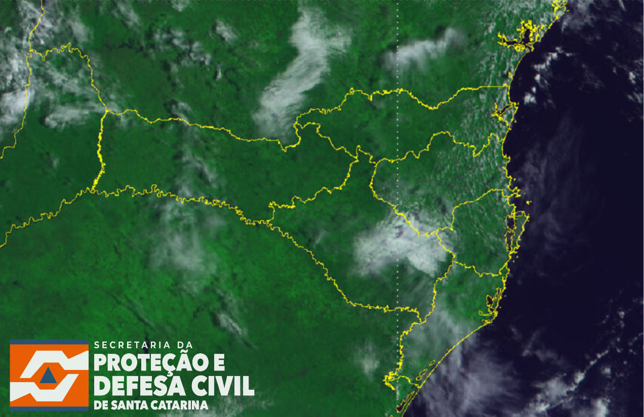 A manhã desta sexta-feira (06) foi marcada pelo predomínio de tempo estável pelo estado, com maior nebulosidade entre o Planalto Sul, sul do Litoral Sul e o Alto Vale do Itajaí. Nessas áreas, as temperaturas se encontram mais amenas, variando entre 18°C a 23°C no Planalto Sul e 23°C a 28°C no Alto Vale e Litoral Sul. Nas demais áreas do estado, os termômetros variam entre 27°C a 35°C. Nas próximas horas são esperados temporais isolados, especialmente no Grande Oeste e Planaltos, característicos de verão, podendo ser acompanhados de raios, rajadas de vento e alagamentos pontuais. O risco é baixo para ocorrências associadas aos temporais.