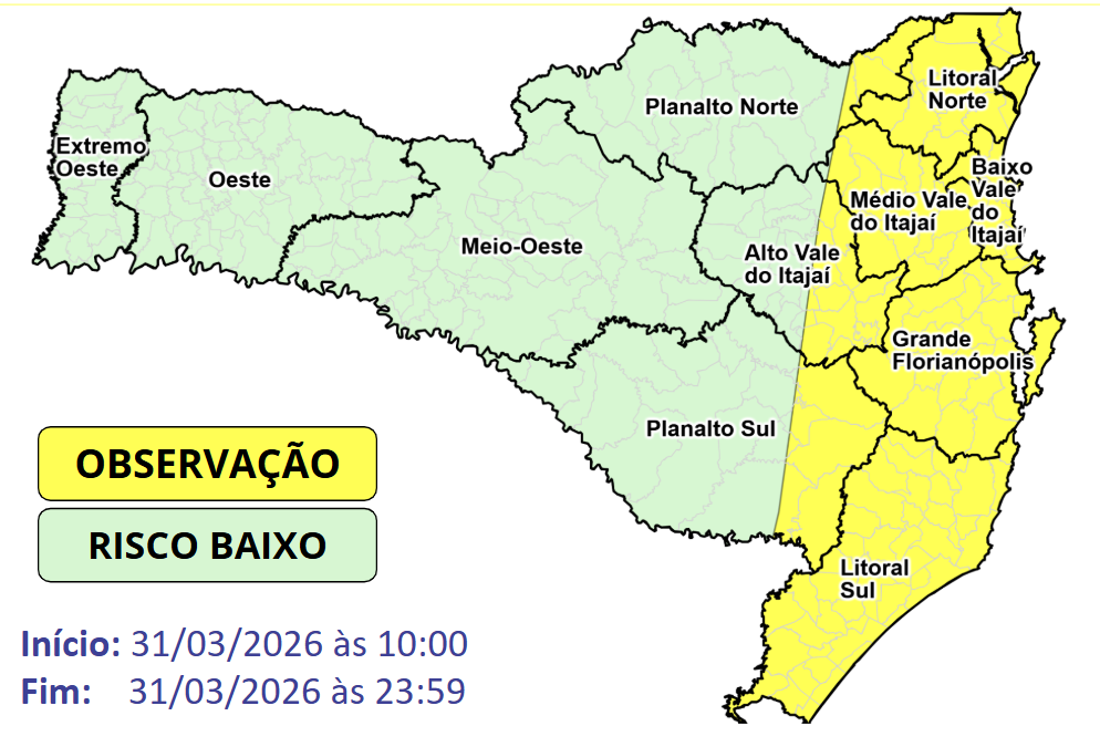 A SDC/SC reforça a importância em acompanhar as atualizações e alertas emitidos nos próximos dias nos nossos canais oficiais.