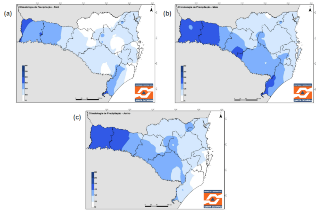 O trimestre composto por abril, maio e junho corresponde, climatologicamente, majoritariamente ao outono em Santa Catarina. Esse período é marcado por mudanças graduais no regime de precipitação e temperatura, típicas de uma estação de transição.