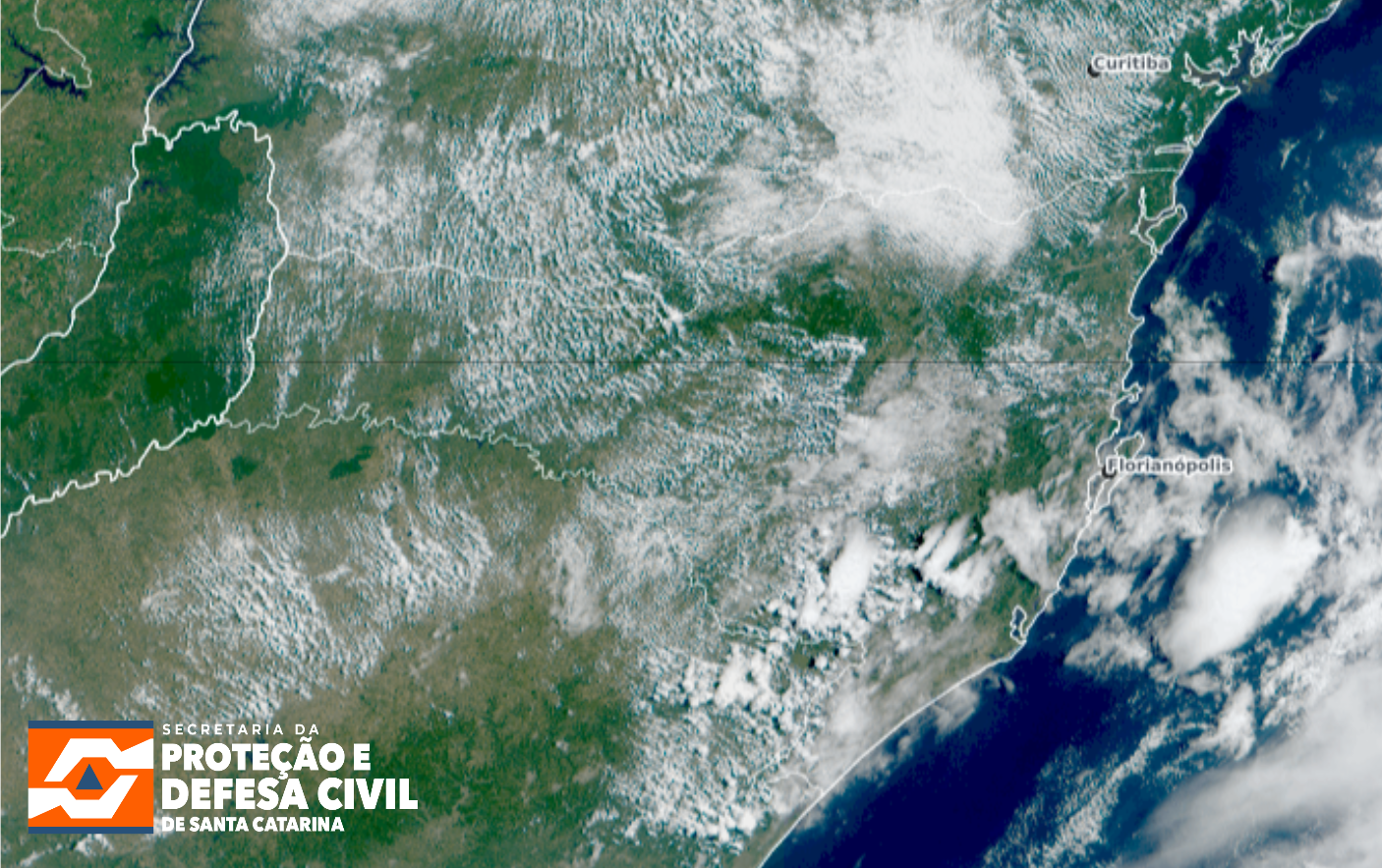 A manhã desta quinta-feira (02) vai terminando com a presença de nuvens espalhadas por quase todas as regiões de Santa Catarina. No Planalto Sul e em partes do Litoral Sul já são vistos os primeiros temporais isolados. Nas próximas horas, os temporais continuam a avançar em direção ao litoral. No momento, os termômetros registram as menores marcas no Planalto Sul, com valores variando entre 19°C e 25°C. Nas áreas do Meio-Oeste e Planalto Norte, as temperaturas oscilam entre 21°C e 27°C. Nas regiões do Litoral Norte, Vale do Itajaí e Grande Florianópolis, as marcas ficam entre 28°C e 32°C. Já no Grande Oeste e Litoral Sul, os valores se apresentam um pouco mais altos, variando predominantemente entre 26°C e 32°C. O risco é baixo a moderado para ocorrências associadas a alagamentos, quedas de galhos e árvores, destelhamentos e danos na rede elétrica.