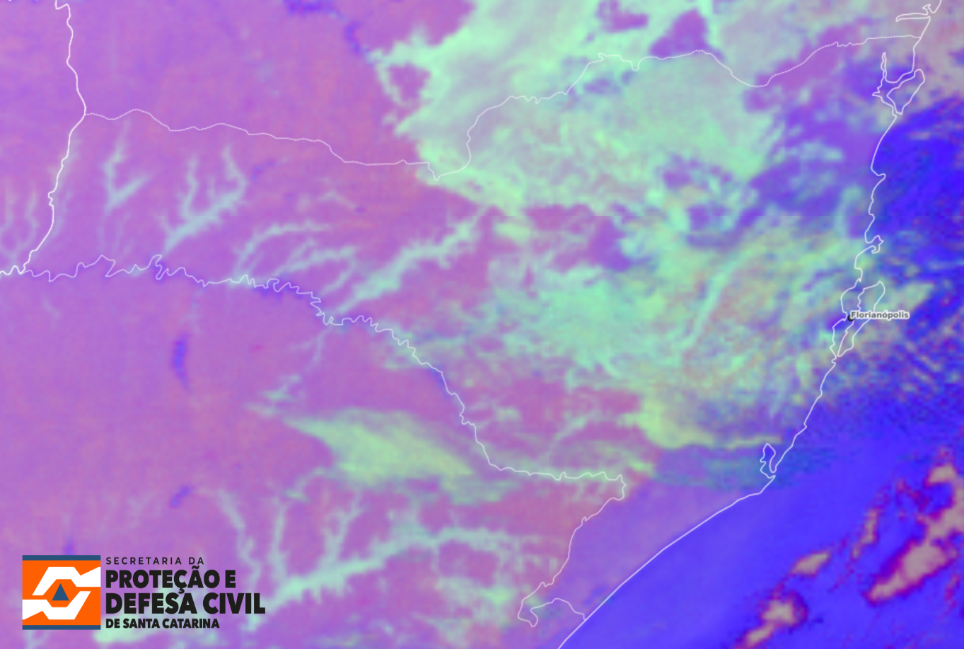 A sexta-feira (10) começou com tempo firme e variação de nuvens em Santa Catarina, devido a presença de uma massa de ar seco associada a uma área de alta pressão. Também há algumas áreas com presença de névoa/nevoeiro. As temperaturas entraram em declínio no decorrer da noite e, no momento, oscilam entre 14 e 21°C no Litoral e entre 10 e 16°C nas demais regiões. Nas áreas mais altas, as temperaturas estão entre 4 e 9°C. Nas próximas horas, o tempo segue firme e o sol predomina pela manhã. Não há risco para ocorrências meteorológicas. Em contrapartida, o mar segue agitado em todo litoral, especialmente entre o Litoral Sul e Florianópolis, com risco moderado para ocorrências relacionadas à atividades de pesca, navegação e esportes náuticos.