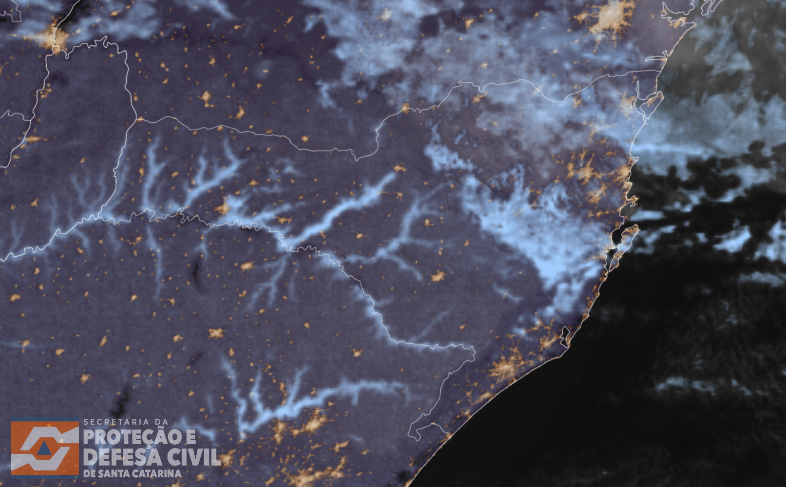 A madrugada desta terça-feira (28) é de tempo firme e temperaturas baixas em todo estado. Na imagem de satélite, é possível observar a ocorrência de nevoeiros ao longo de cursos de rios entre o Grande Oeste e o Planalto Sul, onde o resfriamento é mais acentuado, com marcas entre -2°C e 5°C na Serra, 1°C a 7°C no Meio-Oeste e de 3°C a 8°C no Oeste e Extremo Oeste. Entre a Grd. Florianópolis, Médio e Baixo Vale do Itajaí, Litoral Norte e Planalto Norte, a maior nebulosidade mantém as temperaturas mais altas em relação à outras regiões do estado, com marcas entre 10°C e 20°C. Nas próximas horas, a nebulosidade segue presente na porção nordeste do estado, à medida que os nevoeiros dissipam nas demais regiões, dando lugar ao predomínio de sol. Até as primeiras horas da manhã, o risco ainda é baixo a moderado para ocorrências relacionadas ao declínio das temperaturas, especialmente entre o Grande Oeste e o Planalto Sul. No Litoral Norte, há condições para chuvas fracas, mas ainda sem oferecer risco para ocorrências associadas.